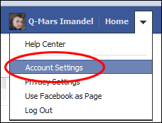From your the Facebook homepage, click on the arrow at the top right to get to your account settings.
